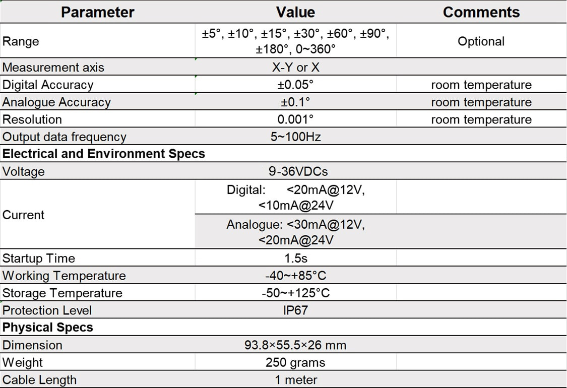 INC100 Serie 0,1° Genauigkeit Neigungssensor verwendet große Markenkomponenten, fortschrittliche Produktion Handwerk, vollständig kalibriert, fortschrittliche SkyMEMS Algorithmus, die sichergestellt, dass unsere Produkte tatsächlich präzise und perfekte Leistung haben.