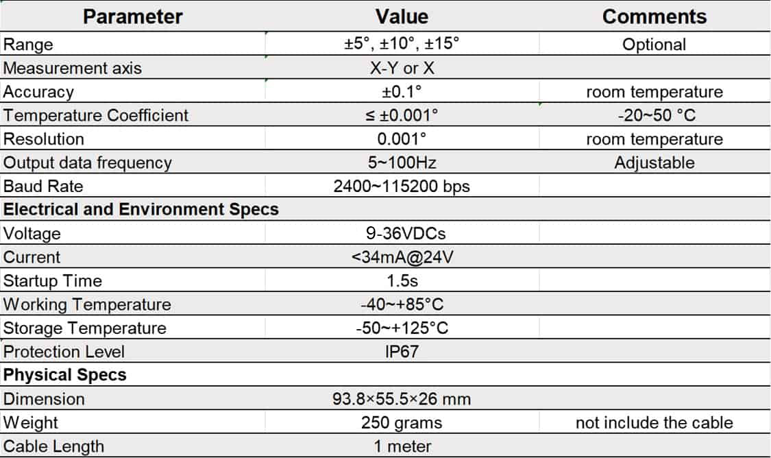 INC100M Serie 0,1° Genauigkeit Neigungssensor nimmt große Markenkomponenten, fortschrittliche Produktion Handwerk, vollständig kalibriert, fortschrittliche SkyMEMS Algorithmus, der sicherstellt, dass unsere Produkte tatsächlich präzise und perfekte Leistung haben.