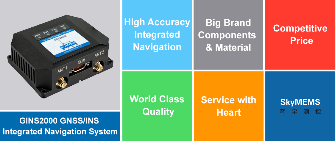 GINS2000 GNSS/INS Integrated Navigation System adopts big brand components, advanced production craft, fully calibrated, advanced SkyMEMS algorithm, which assured that our products have real actual precise and perfect performance.